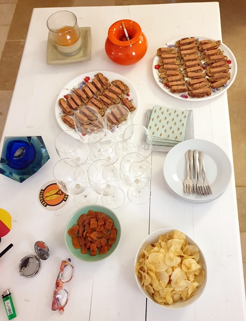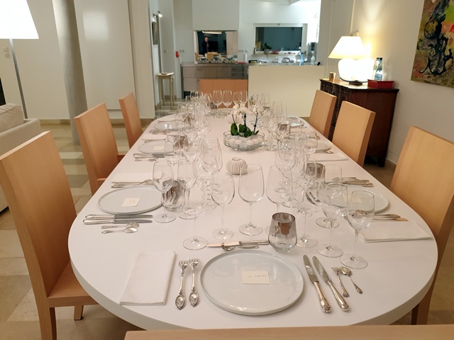 Pendant l’après-midi la cuisine bruisse de préparations plus sophistiquées les unes que les autres dans la recherche de leur simplicité. A 20 heures précises notre groupe de huit est formé.