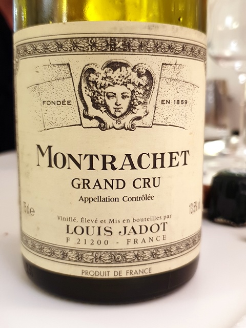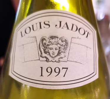 Le plat suivant est de coquilles Saint-Jacques juste poêlées qui accompagnent un Montrachet Louis Jadot 1997. Le vin est servi beaucoup trop froid aussi nous aurons du mal à en profiter pleinement. Le vin s’épanouira quand même un peu et montrera qu’il a la fierté des montrachets. C’est un vin riche et complexe, solaire, formant un accord naturel avec les délicieuses coquilles, cuites à la perfection, à la seconde près.