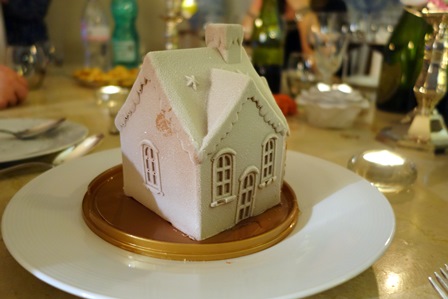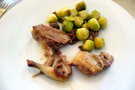 Le lendemain, le déjeuner de Noël est simplifié. Nous allons directement au plat de résistance qui est du pigeon avec choux de Bruxelles, lardons et marrons en copeaux. Les trois vins de la veille sont meilleurs. La Landonne 2001 est riche, plus dense. La Turque 1992 prend une ampleur remarquable. La Mouline 1986 reste toujours aussi élégante.