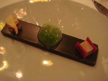 Pibales sautées "minute", anguille persillée à la plaque et fumée en raviole