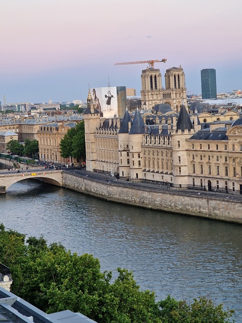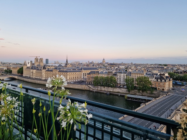 Nous montons ensuite au dixième étage du bâtiment de la Samaritaine où la vue sur Paris est impressionnante. C’est ici que nous goûtons debout les desserts, accompagnés comme les plats par le 2004 P2 toujours aussi gastronomique.