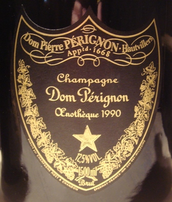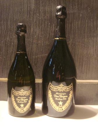 Champagne Dom Pérignon Œnothèque en magnum 1990 (photo des deux champagnes sur fond d’ardoise)