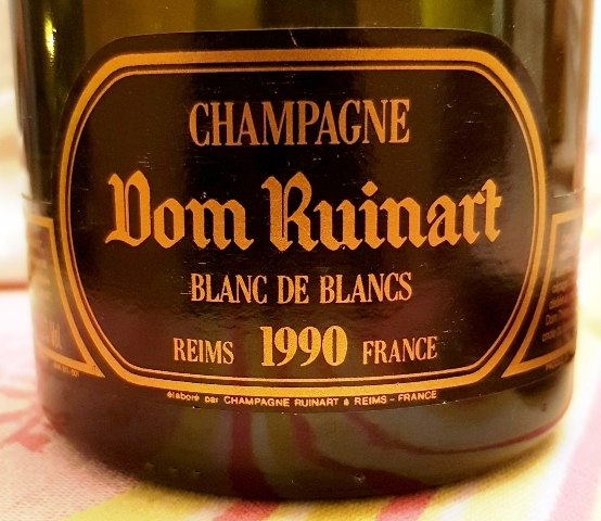 Ma fille cadette vient confier ses enfants à ma femme. Elle arrive à l’heure de l’apéritif et s’apprête à repartir. Elle a suffisamment de temps pour trinquer sur un Champagne Dom Ruinart 1990. Le bouchon résiste un peu mais vient sans faire le moindre pschitt. Je suis désolé car ce champagne de 27 ans n’est pas si vieux.