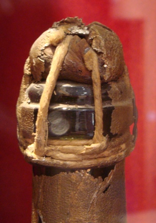 deux magnifiques exemples de bouteilles fermées à l’aide de lanières avant que le fil de fer ne s’impose