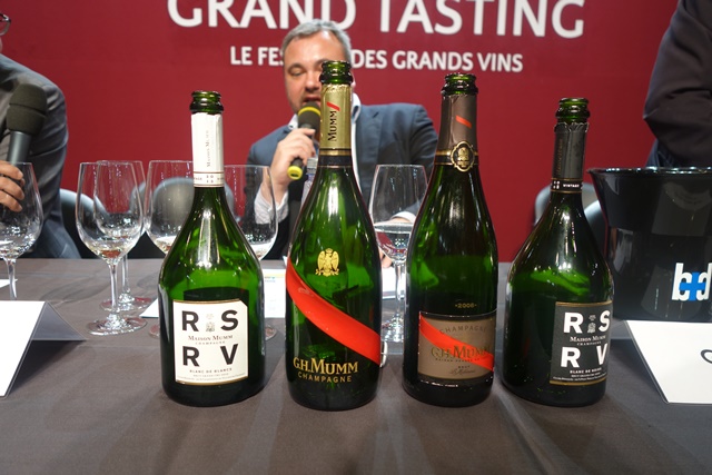La première Master Class à laquelle j’assiste est celle de « la signature de la maison Mumm ». Elle est présentée par Didier Mariotti chef de cave.