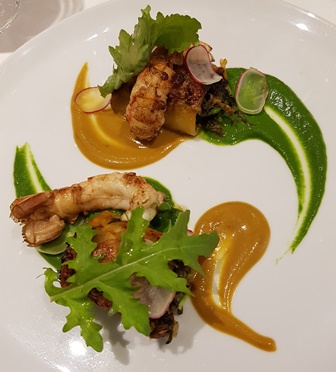 Le premier plat a des parties glacées qui ne sont pas idéales pour le Corton-Charlemagne Louis Latour 1969 de Tim. Ce vin est exceptionnel. Le parfum est imprégnant comme on ne pourrait pas l’imaginer et en bouche c’est une perfection absolue. C’est la définition parfaite du Corton Charlemagne gouleyant, riche et racé. Un immense vin qui n’a pas un gramme de défaut. On est en face du vin parfait.