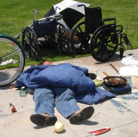 Venice, plage fabuleuse de la côte californienne. Tous les asociaux s’y montrent. Le personnage central de cette photo, c’est l’oignon. Apparemment, l’homme s’est affalé (on voit la bouteille vide) avant même d’avoir pu trancher l’oignon dans sa poêle.