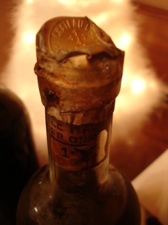 La bouteille est sans étiquette. La capsule est bizarrement mise sur le goulot (sans doute relevée pour lire l’année). L’année est difficile à lire. J’ai commencé par lire 1952. Mais avec une loupe, j’ai déchiffré 1948.