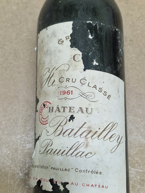 Une bonne nouvelle est que tous les vins annoncés sont présents en cave, mais deux bouteilles me semblent avoir des niveaux un peu bas. Pour éviter tout problème, je rajoute deux vins. Le Château Haut-Batailley 1961 au niveau un peu bas sera accompagné d’un Léoville-Poyferré 1959 et le Richebourg Domaine de la Romanée Conti 1967 sera accompagné d’un Grands Echézeaux Domaine de la Romanée Conti 1974. Quand les convives se sont rendu compte qu’au lieu d’avoir un vin du domaine de la Romanée Conti ils en auraient deux, tout d’un coup, la vie devenait plus belle.