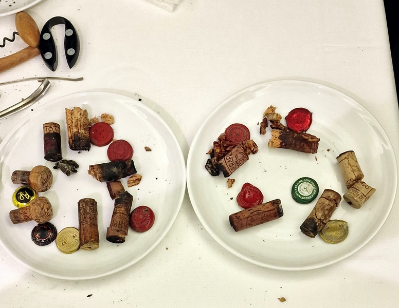 Pour deux vins au liège léger collé aux parois j’ai utilisé le bilame Durand qui permet de décoller les bouchons. Les autres ouvertures n’ont pas créé de vrai problème, mais en voulant ouvrir les vins avec précaution j’ai mis près de deux heures pour les douze vins. A ce rythme, tout sommelier professionnel serait immédiatement congédié, mais c’est indispensable de traiter ainsi les vins anciens.