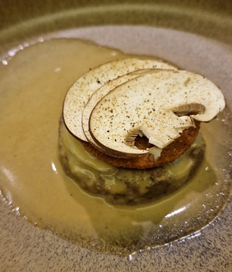 L’« Y » vin blanc d’Yquem 1962 est un vin d’une extrême précision. On peut sentir qu’il y a un peu de botrytis qui rend plus doucereux ce vin mais il reste résolument sec. Un accord fusionnel se forme avec le champignon de Paris. Sa longueur est sensible.