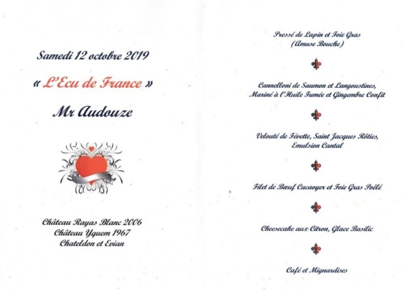 Thierry, le maître d’hôtel, connaît mes habitudes et mes exigences. Il fait un service très agréable. J’avais donné un verre d’Yquem à partager en cuisine. Thierry n’en a pas eu. Il faudra vite que l’on corrige cet oubli. L’Ecu de France est un lieu où il est agréable de se restaurer. Longue vie à ce lieu chargé d’histoire qui perpétue de bien belles traditions.