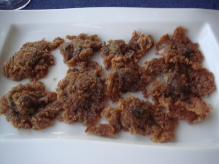 Pour les cigales au goût très pur, fait d’une mâche intense et d’une fraîcheur presque mentholée, c’est un Bastor-Lamontagne, sauternes 1995 que j’ai apporté. Bu seul, ce sont le caramel et le pain d’épices qui dominent. Avec la cigale, la continuité est assez spectaculaire. Et comme avec l’Yquem d’un essai récent, ce qui frappe, c’est qu’au-delà de la continuité, le sauternes respecte la chair de la cigale qui reste présente en bouche, sans aucune altération. La mise en valeur est concluante.