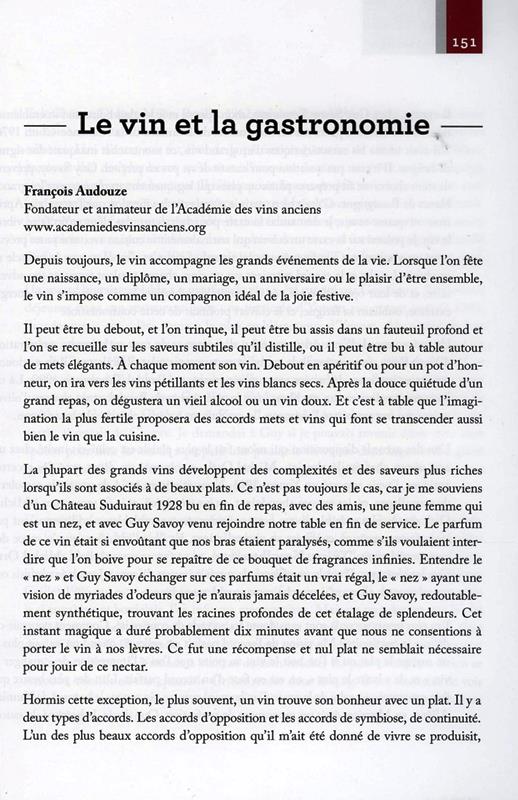 J’avais eu la chance qu’une étude que j’avais faite sur les bouchons des vins anciens soit couronnée d’un prix de l’Académie Amorim en 2006. C’est sans doute la raison pour laquelle j’ai eu l’honneur qu’on me demande de contribuer à cet ouvrage dans l’un des trois chapitres, « Vin et Culture ».