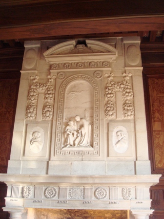 La salle à manger dans laquelle des auteurs sont installées comportent des sculptures où l’on pourrait reconnaître sans doute des personnages de l’époque et du lieu.