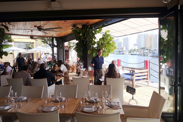 Nous nous sommes adaptés très vite aux six heures de décalage entre Paris et Miami. Après une bonne nuit une tornade violente démarre la journée. Le ciel se dégage et nous allons chez notre fils. Nous faisons une petite promenade sur les plages de Key Biscane. La voiture se gare dans un quartier qui ne paie pas de mine, plutôt pauvre. Mais c’est trompeur car une fois passée la porte d’entrée du restaurant Seaspice nous entrons dans un lieu cossu, magnifiquement décoré, qui longe un cours d’eau. Les pélicans volent autour de nous et nous avons même vu un lamantin. Le lieu est bien tenu, le personnel est très professionnel. La carte des vins est assez complète et les prix sont le plus souvent indécents.