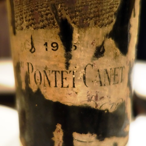Le Pontet-Canet se montre solide, mais comme il est carré et que le Latour l’est plus que lui, en ajoutant de la noblesse, le classement qui était : 1920, 1916, 1913 devient 1920, 1913, 1916. Ce qui me frappe le plus, c’est que les trois vins deviennent de grands vins, agréables à boire, avec de belles subtilités. Le Haut-Bailly est ‘charme’, le Pontet-Canet est ‘structure’ et le Latour est ‘noblesse’. Et les trois me plaisent et je me demande comment il est possible que ces trois vins aussi âgés soient aussi bons alors que leurs niveaux étaient entre mi et basse épaule, le Haut-Bailly étant le plus bas. Je crois que le secret est l’examen de leur couleur sous une lampe crue, qui permet de voir les vins qui ont conservé leur vitalité.