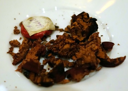La perception des vins avant que nous n’ayons un plat à manger sera très différente de celle que nous aurons lorsque le repas aura commencé. A ce stade le Château Haut-Bailly 1913 a un joli nez fruité, une belle attaque délicate, dans le fruit, mais un finale un peu amer, qui limite le plaisir.