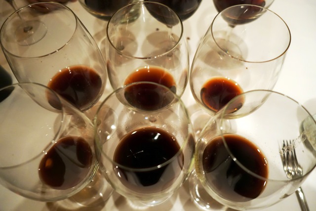 Plus le temps passe, plus la délicatesse raffinée du Haut-Bailly s’impose, même si le Latour est très grand. Je verse les fonds de bouteilles dans de nouveaux verres pour mieux en profiter. L’examen des lies est toujours révélateur. Les lies démontrent l’extrême vitalité des trois vins. Je préfère la lie du Haut-Bailly, celle du Latour étant plus douce donc moins vibrante.
