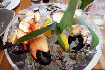 Je choisis des pinces de tourteau délicieuses facturées à un tarif à peu près dix fois plus élevé que celui du poissonnier voisin où nous irons prendre des crevettes pour le dîner de ce soir. Pendant notre repas de beaux bateaux ont accosté, le Dom Pérignon rosé au frais les attendant. Normal, on est à Miami.