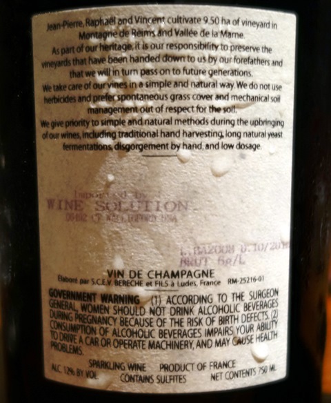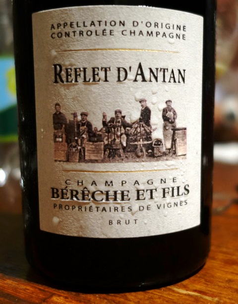 Le soir donc, dîner crevettes chez mon fils qui ouvre un Champagne Reflets d’Antan Bérêche & Fils sans année dégorgé en octobre 2012. Il est franc, agréable, ouvert et serein. Il est un peu dosé et doucereux, mais il se boit avec beaucoup de plaisir. C’est sa franchise que j’aime. Les crevettes à peine cuites lui vont bien.