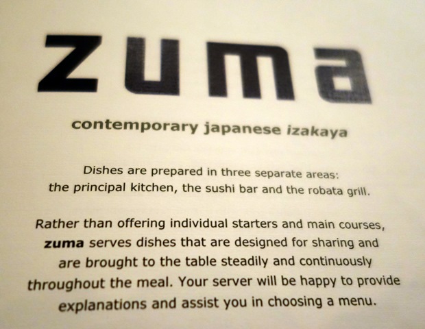Le dernier soir de notre séjour, nous allons dîner au restaurant Zuma restaurant japonais de cuisine contemporaine. C’est l’endroit à la mode, « the place to be », et si l’on vient en Rolls, en Ferrari ou en Aston Martin, le voiturier la garera bien en vue. Pour nous, il faudra plus de dix minutes en fin de repas pour que le voiturier aille la chercher – pardon, l’un des voituriers – au fin fond de l’échelle sociale.