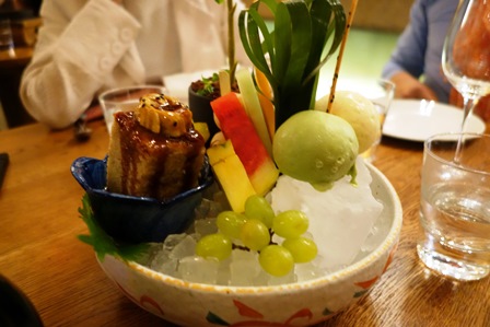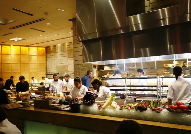 Nous entrons dans le restaurant bondé et incroyablement bruyant. Les américains aiment le bruit poussé ici à l’extrême. La nourriture est vraiment bonne variée et copieuse. Nous avons demandé une multitude de plats que nous avons partagés en picorant, légumes, tempura, gigantesques gambas, poissons et goûteux desserts et sorbets. Pour cette cuisine variée, j’ai choisi le Champagne Laurent Perrier Grand Siècle que j’ai renouvelé tant il est bon. Ce champagne extrêmement féminin est romantique. Un régal. Ça fait plaisir qu’un champagne non millésimé et très certainement sans long passage dans la cave du restaurant ait une telle présence. On se réjouit quand on boit ce champagne de plaisir raffiné.