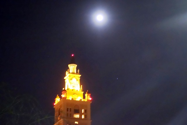 la lune au dessus de la tour de l’hôtel Biltmore met un point final à notre séjour