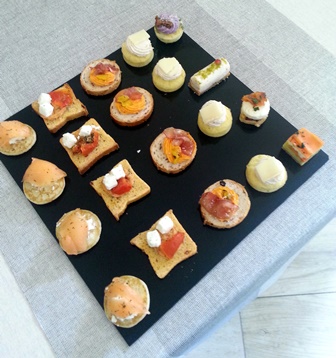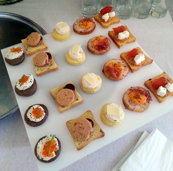 Le menu composé en choisissant parmi les plats proposés par le traiteur est : Amuse-bouche en petits canapés / Pressé de foie gras aux fruits secs et son chutney de saison / Filet de dorade, pointe d’asperges / Filet de bœuf, pomme Anna et fagot d’haricots verts / Trilogie du maître fromager / Assortiment d’entremets.