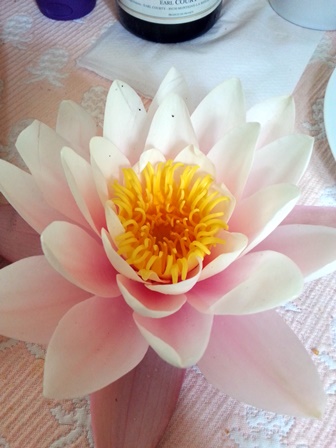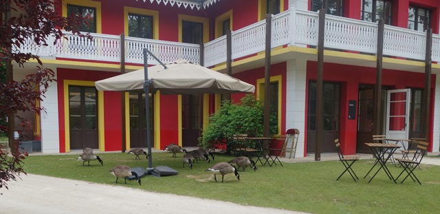 A 9 heures du matin, je viens livrer mes vins pour les ouvrir et douze douzaines de verres car le traiteur n’a pas des verres qui me conviennent. Je sens tout de suite qu’Ibrahim, le responsable qui me reçoit, est un homme d’initiative et de décision. Je sais à l’avance qu’il résoudra les éventuels problèmes. Pendant que j’ouvre les bouteilles dans l’office, je prends conscience que l’organisation de tels événements met en jeu une myriade de petites entreprises. Il y en a une qui apporte les housses de chaises, une autre les fleurs que ma femme a choisies pour la décoration et les centres de table. Une autre apporte les desserts. Tout se passe dans une atmosphère huilée. A l’ouverture, tous les vins me semblent offrir de beaux parfums sauf une bouteille de Châteauneuf-du-Pape qui est bouchonnée, du moins, c’est ce que je crois. Attendant les invités, je me promène autour du lac. Il y a un grand attroupement de bernaches du Canada, dont par un hasard à signaler trois d’entre elles s’étaient posées sur notre étang il y a trois jours, alors que nous n’en avions jamais vues en plus de trente ans. Avaient-elle lu dans nos pensées ? En cherchant de quels oiseaux il s’agissait j’ai appris leur nom. Ces grosses oies envahissent l’espace et le salissent ce qui oblige des employés à nettoyer les abords, mais les contours du lac sont sales.