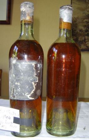 The name of the wine engraved in the glass, and the capsules of the Lafite 1900