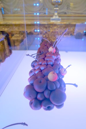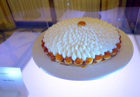 Dans le magnifique salon Pompadour de l’hôtel Meurice, il y a des stands de différents desserts : des éclairs au chocolat, à la vanille, au café, des Paris-Brest revisités avec des saveurs précises, et des prouesses techniques comme un Rubik’s cube de pâtisserie nommé « Rubis cake », où tout semble parfait, le gâteau étant visible dans une vitrine, comme un saint-honoré magnifique d’architecture. Des fruits comme des vrais sont en sucre ou en pâtisserie et sont diaboliquement bons.