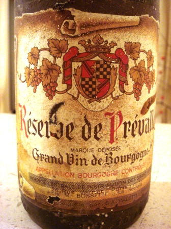 Mon gendre va travailler à Paris et revient deux jours après car il devra reconduire femme et bébé à la capitale. Ce sera ce soir une joue de bœuf aux carottes. Pour l’apéritif, un champagne Ruinart non millésimé a des accents de miel. Il est agréablement typé. Ayant acheté près d’Orange une cave à un particulier – ce que je ne referai plus, car c’est un métier, pas un caprice – il faut bien que l’on ouvre ce que j’ai acquis où nous avons fait d’assez bonnes pioches. Je jette mon dévolu sur un « Réserve de Prévallée », grand vin de Bourgogne sans année, appellation bourgogne contrôlée qui doit dater du milieu des années soixante si l’on se fie au reste de la cave. Ce vin est vendu par « l’agence centrale de distribution des grands vins », qui est parisienne, mais il y a un petit tampon qui recouvre cette mention, d’un caviste de La Rochelle. Le vin a été embouteillé par la SA Valette à Charenton, où l’on a pris la précaution d’indiquer sur la bouteille, gravé dans le verre, qu’il ne doit pas être réutilisé, et tous ces périples après le passage à Orange se finissent chez moi. Le vin n’ira pas plus loin et c’est un bien. La bouteille, délicieusement ringarde d’un vin plus qu’ordinaire, a belle allure. Le bouchon se brise en plusieurs morceaux et le bouchon sent bon, comme le vin dans le goulot. Je verse deux verres et nous trinquons. Nous ne pousserons pas l’expérience très loin, car le vin est torréfié comme après un coup de chaud en cave. Ce vin est mort. Il offrira un nez agréable le lendemain mais rien ne me motive à l’essayer. J’avais prévu une possible faiblesse de ce bourgogne. Le Côtes de Provence La Courtade 1990, vin de l’île de Porquerolles, est une surprise plus qu’agréable. Il se confirme chaque fois que l’âge profite aux vins de Provence. Le vin est solide, présent en bouche, d’une longueur acceptable, et ce qui est le plus significatif, c’est qu’il joue juste. Il a très plaisamment accompagné le bœuf aux carottes. Ce n’est que plus tard, près d’une heure après, que j’ai pris conscience que la trame de ce vin n’a pas la profondeur des grands vins du Rhône que nous avons bus. C’est intéressant, car sur la viande, il jouait d’un charme remarquable.