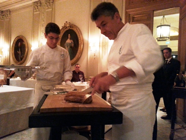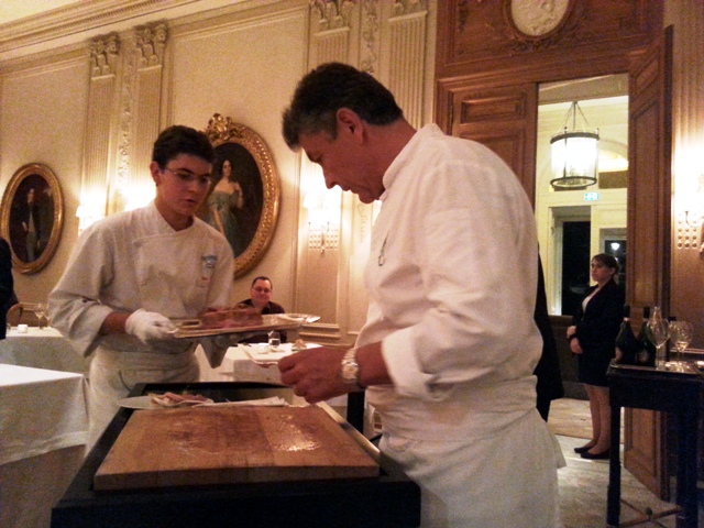 L’hôtel Les Crayères à Reims a eu la riche idée d’organiser des repas à quatre mains et cinq étoiles avec Philippe Mille, le chef deux étoiles des Crayères et avec un chef trois étoiles. Ce soir, c’est Régis Marcon qui donne la réplique à Philippe.