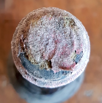 L’Hermitage suit à peu près le même scénario avec un bouchon dont le haut est dur comme du béton et avec un fort rétrécissement du goulot. En voyant la capsule et le bouchon, ainsi que la bouteille très lourde et ancienne cela me fait plus penser aux Nuits Cailles 1915 dont j’ai bu plus de douze exemplaires qu’à un vin de 1939 comme suggéré par le vendeur.