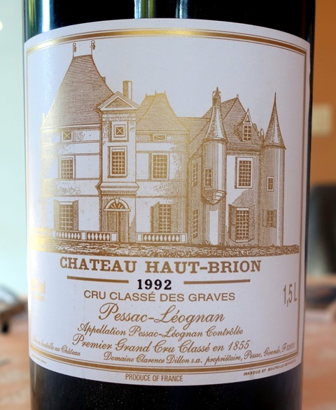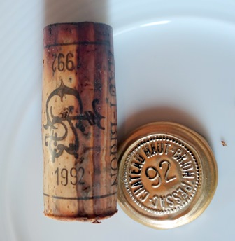 Lorsque j’ai choisi le Château Haut-Brion rouge magnum 1992 j’ai voulu vérifier si ce vin d’une année faible présentait de l’intérêt. Lorsque j’ai commencé à acheter du vin, avec des moyens mesurés, je m’intéressais aux petites années des grands vins, à budgets beaucoup plus acceptables et j’avais pu constater qu’avec l’âge, les petites années n’étaient pas aussi handicapées que ce qu’avaient annoncé les experts au moment de leur commercialisation. J’ai ensuite gardé cette habitude même lorsque j’ai pu avoir accès aussi aux grandes années. Vérifier ce 1992 m’intéresse. A l’ouverture, je constate que le bouchon est légèrement chevillé car il se lève facilement. Mais cela n’a eu aucune influence sur le niveau qui est dans le goulot, proche du bouchon. L’odeur à l’ouverture avait une petite pointe d’acidité dont je savais qu’elle allait disparaître. Une demi-heure avant le repas, je verse le vin dans deux carafes pour faire déguster à l’aveugle ce vin. Il est maintenant servi. Le nez est très riche et profond. Il a une richesse qui m’étonne. Je reconnais au nez un vin de bordeaux, mais je sais ce que l’on boit. Autour de moi on suggère plutôt une Côte Rôtie de Guigal, peut-être en spéculant sur mon habitude de servir ces vins à la maison. En bouche, le vin est d’une richesse rare, truffé, de grande présence et de bel équilibre. Jamais je n’imaginerais qu’il s’agit d’une année de seconde importance. Sur le poulet il est brillant. A chaque gorgée il m’étonne. Ce n’est pas la première fois, surtout avec Haut-Brion, qu’une petite année donne un vin de grand plaisir.