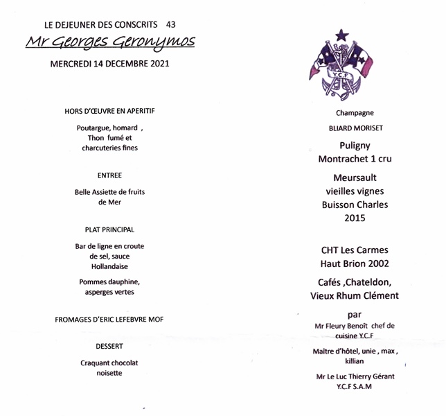 C’est la première fois depuis deux ans que notre cercle de conscrits est au complet. L’ami qui invite nous reçoit au Yacht Club de France. Il a conçu avec Thierry Le Luc directeur de la restauration et Benoît Fleury le chef de cuisine un bien joli programme.