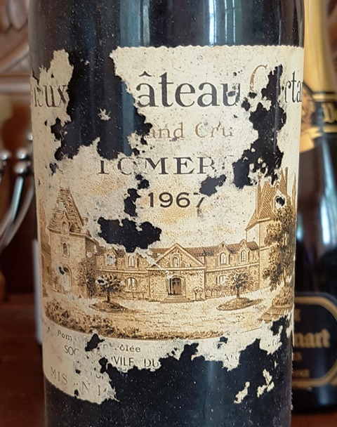 Nous passons à table où nous attend un gigot cuit à basse température depuis plus d’une journée, dans une marmite emplie de carottes et autres petits légumes. Le Vieux Château Certan Pomerol 1967 avait un niveau presque dans le goulot et son nez très pur m’avait conquis à l’ouverture. Le vin est d’une belle couleur rouge sang. Son nez est délicat et profond à la fois, pur et direct. En bouche c’est un pomerol savoureux, très archétypal. La truffe est là, avec un grain de toute beauté. Ce vin riche mais contenu est idéal.