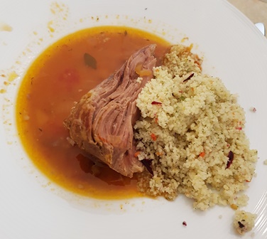 Au service maintenant la couleur du vin dans le verre est très claire, d’un rose sale, terreux, ce qui n’est pas très encourageant. A le voir, je crains que mes enfants, surtout mes filles, ne l’acceptent pas. Heureusement, il y a le parfum du vin. Ce vin est une explosion de roses d’abord, enivrantes, puis, c’est le sel de la Romanée Conti, cette signature si caractéristique, qui est là. Je sens bien sûr un peu de vieux, mais rose et sel sont tellement prégnants qu’on oublie tous les défauts. En bouche c’est la même chose. La rose et le sel, surtout le sel pour moi et surtout les roses pour mes filles, sont tellement agréables qu’ils font oublier que le vin est vieux. Je suis persuadé que beaucoup d’amateurs, à la vue du niveau de la bouteille et de la couleur dans le verre, auraient déclaré urbi et orbi que ce vin est mort. Le miracle est pour moi que mes trois enfants adorent ce vin, même ma fille dont on dit en se moquant qu’elle n’aime que les « vins de Ginette ». Quel beau cadeau pour moi de savoir que mes trois enfants ont adoré – ce qui veut dire ont compris – ce vin fragilisé mais porteur de tout ce qui fait l’âme de la Romanée Conti. A chaque gorgée je me dis « mon Dieu pourvu qu’ils comprennent » et chacun de leurs « oh » et de leurs « ah » me fait frissonner de bonheur. Car ce soldat de Richebourg, encore vaillant, se bat pour notre plaisir. Le fruit est sous-jacent dans le bouquet de rose et le finale est très pur. La viande et la semoule aux fleurs se font humbles pour que le vin soit en majesté. Communier en famille avec un vin fragile mais tellement porteur de l’âme de la Romanée Conti, c’est un instant de pur bonheur.
