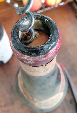 le bouchon était enfoncé dans le goulot. le tirebouchon n’a tiré que des miettes. Il a fallu cureter pour enlever toutes les miettes de bouchon.