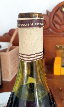 A côté de lui est servi un Châteauneuf-du-Pape Vin fin d’Origine Vini-Prix à Charenton sans année que l’on peut situer dans les années 60 ou à la fin des années 50. Pourquoi ai-je acheté cette bouteille, je ne sais pas, sans doute dans un lot disparate. Le nez est très engageant, riche et profond, et ce dès l’ouverture il y a près de quatre heures. Le vin bu à l’aveugle par mes filles leur plait beaucoup et elles pensent à un vin du sud. Il m’apparaît comme une évidence que ce vin est un Châteauneuf-du-Pape qui a été fortifié par un vin d’Algérie, car il est riche et lourd et il y a des accents de café très caractéristiques. Et ce vin est très agréable à boire, car on ne lui demande pas son pedigree.