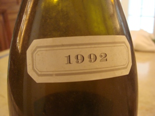 Sur un poulet délicieux nappé d’une sauce aux arômes inédits de raisins, de pruneaux, de pignons et d’oignons, le Clos de Vougeot Domaine Méo Camuzet 1992 est d’une belle sérénité. Mais ce vin qui avait été le passeport d’entrée dans le monde des vins de Méo Camuzet m’avait laissé un souvenir de fruité brillant que je trouve en sourdine aujourd’hui, quelques années après. Bien sûr le vin est excellent, avec la subtilité discrète des vins de cette année, mais l’étincelle ne crépite plus autant.