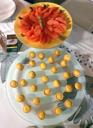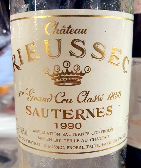 J’avais raconté aux amis la grande surprise lorsque j’avais constaté qu’un kouign amann pouvait être associé avec un château d’Yquem, ce qui va à l’encontre de toutes les préconisations pour Yquem. Nous avons voulu faire l’essai et nous nous sommes tous mis en chasse de kouign amann, ce qui en Provence est difficile. Nos recherches nous ont procuré ces pâtisseries de trois origines, que nous avons essayé d’associer à un Château Rieussec Sauternes 1990. Aucun des trois kouign amann ne ressemble au vrai kouign amann breton, offrant profusion de beurre et de sucre. De ce fait l’accord n’est que poli. Heureusement la maîtresse de maison avait prévu des pamplemousses roses et des tartelettes au citron, ce qui a mis en valeur le beau sauternes, très différent d’un Yquem. Sa couleur est très sombre, son nez très subtil. Il est plus vif et incisif qu’un Yquem mais moins large et moins kaléidoscopique. Il m’a procuré beaucoup de plaisir. Et le prolongement que donne le pamplemousse rose crée une longueur infinie.