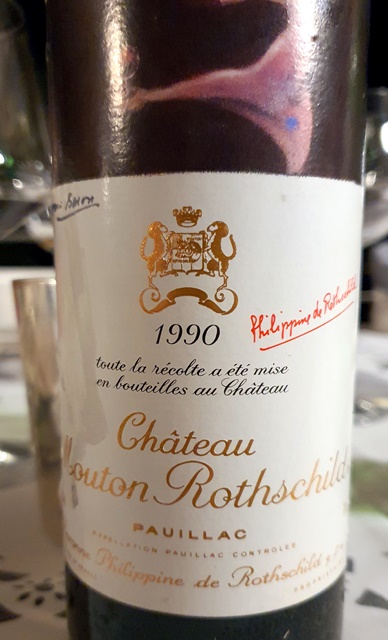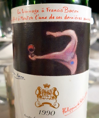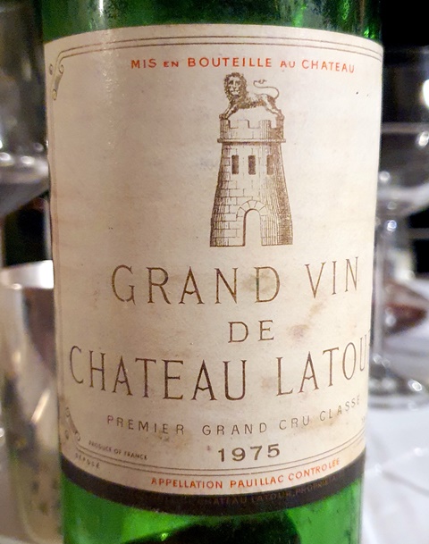 La viande de bœuf présentée en tournedos et accompagnée de pommes de terre passées deux fois au four est associée à deux bordeaux. Le Château Mouton-Rothschild 1990 a un nez un peu imprécis mais sa mâche est belle. Ce n’est pas un des plus grands Mouton, mais il est agréable. La difficulté pour lui, c’est d’être servi en même temps qu’une merveille. Le Château Latour 1975 est magnifique. Lorsque mon ami a voulu l’ouvrir vers 16 heures, il a observé une chose curieuse : le bouchon a été comme aspiré par la bouteille et est tombé dans le vin sans réaction possible. Le vin a été carafé et offre un parfum brillantissime. Et le vin fait comprendre en quoi des vins comme Latour sont au-dessus de tous les autres. Ce vin est divin, tout velours, subtil, riche, élégant et aussi délicat.