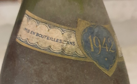 J’avais ouvert sans trop d’illusion un Meursault C. Charton Fils 1942 au niveau assez bas. Les odeurs faisaient penser à une serpillère au moment de l’ouverture. Lorsqu’il est servi, toutes les mauvaises odeurs ont disparu. Mais le vin est plat, fade, et ne porte aucune émotion. Il est inutile d’insister.