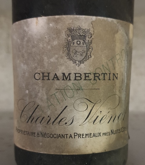 Le Chambertin Charles Viénot 1934 est un vin que j’avais acheté il y a une vingtaine d’années lors d’une vente aux enchères de vins du restaurant Maxim’s. Le niveau est très acceptable pour cet âge. A l’ouverture le parfum souffrait de beaucoup de vilaines odeurs, au point que j’avais peur que le vin ne puisse être bu à table. Au moment de servir je suis rassuré, car les mauvaises odeurs ont disparu. Il reste une légère torréfaction qui va s’estomper progressivement. Ma femme a préparé des poulets au four avec un gratin de pommes de terre qui sont idéaux pour mettre en valeur les vins. Le chambertin s’améliore et devient ce que j’espérais, un riche vin généreux, puissant et subtil. C’est un beau témoignage même si le vin a un peu souffert.