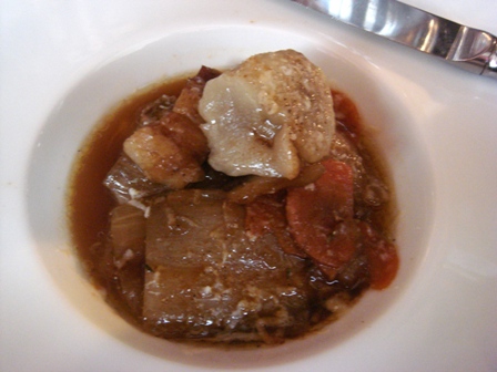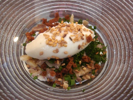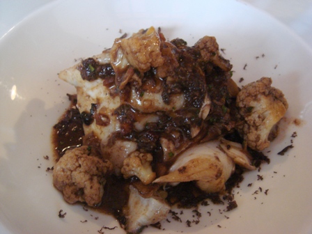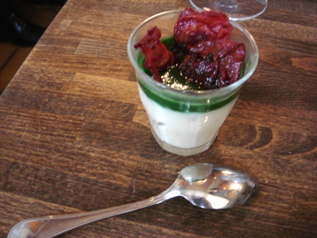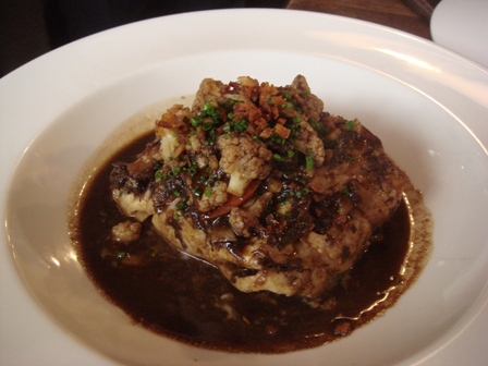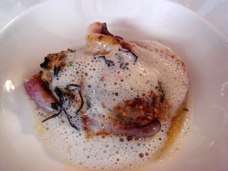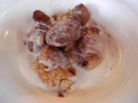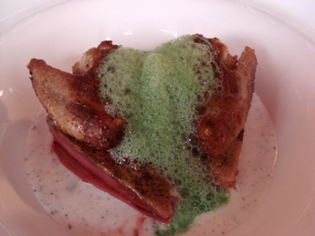 le pigeon et son accompagnement (lamelle de betterave confite). Je n’ai pas photographié l’assiette de pattes de pigeon