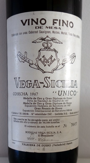 Le Vega Sicilia Unico 1967 est une surprise mais dans l’autre sens. De mon expérience, la décennie 1960-1969 est la plus brillante pour ce vin. Or ce 1967 est un peu éteint, un peu coincé. Bien sûr il est bien fait, mais il lui manque le supplément d’âme que l’on trouve normalement en ce vin. Je ne vois pas de réel défaut sauf cette paresse qui fait que le vin ne se livre pas. Seul le finale rachète un peu le vin avec par moment des notes mentholés qui sont la signature de ce vin.