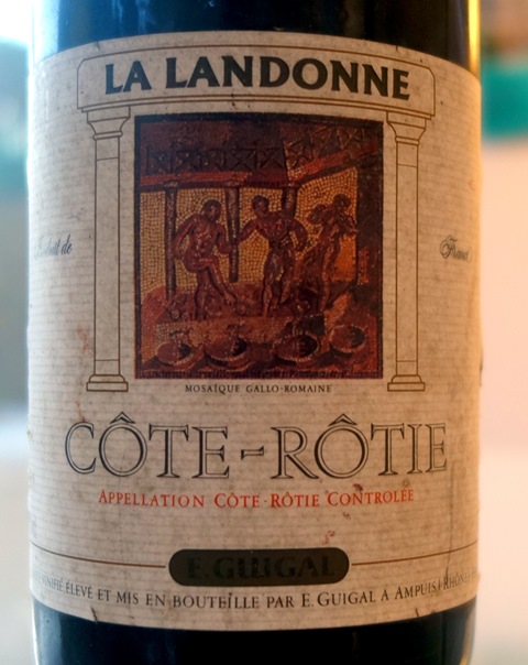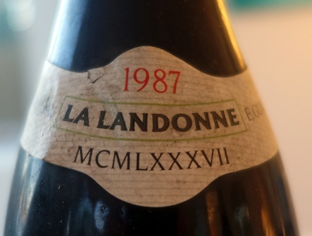 Notre rythme d’absorption est soutenu aussi est-il temps d’ouvrir le vin que j’avais prévu avant que mon ami ne déclare son apport. La Côte Rôtie La Landonne Guigal 1987 est une merveille. Il a la jeunesse du 2003 que nous venons de finir et la lisibilité d’un vin généreux et immédiat d’accès. Et ce qui le transcende, c’est la fraîcheur de son finale. Mon ami signale ses notes mentholées qui sont celles d’une exquise fraîcheur. Ce vin est du plaisir pur. Les fromages sont tellement nombreux et variés qu’il faut choisir ceux qui vont avec cette splendide Landonne. Le Laguiole convient bien ainsi que le Saint-Nectaire, mais aussi le superbe bleu de Termignon, bien vif.