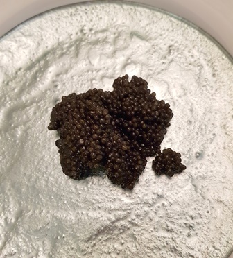Pour que l’on puisse imaginer la taille des boîtes de caviar, j’ai mis un petit chat sur un coussin.